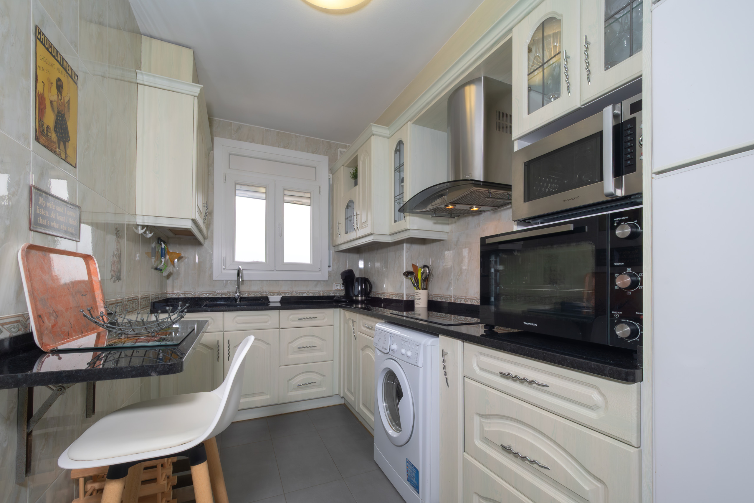 La cocina independiente está equipada con placa de inducción, frigorífico, microondas, horno, congelador, vajilla/cubertería, utensilios de cocina, cafetera, tostadora, hervidor de agua y exprimidor.